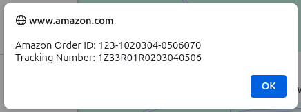 With the bookmarklet in your bookmark list, Go to your Amazon Orders page and select "Track Package" to view shipping status. Then click the ("Get Tracking Number") bookmarklet from your bookmarks. You should see a popup that contains the Amazon Order & Tracking Number.